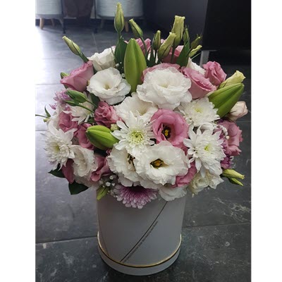 פלאוור בוקס עגול ורוד לבן – פרח באהבה